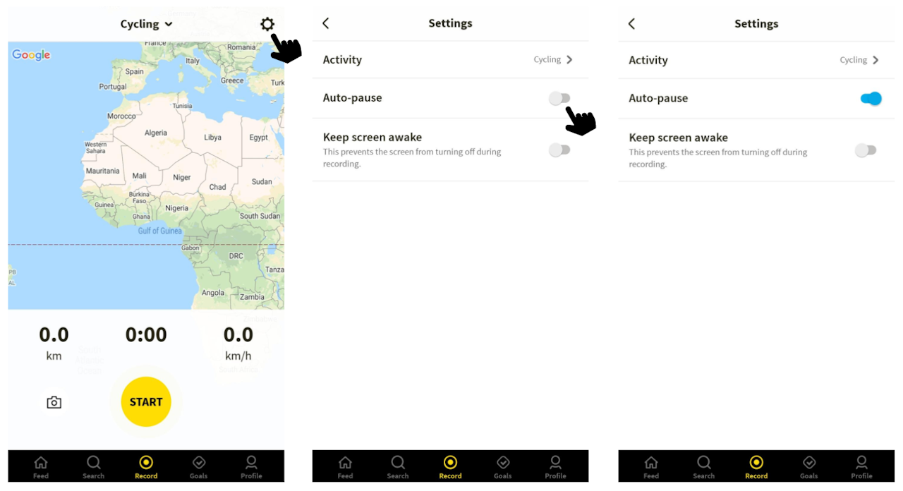 - Tap on the switch to enable auto-pause (if your activity type allows auto-pause)